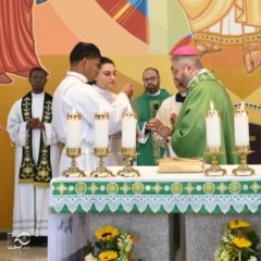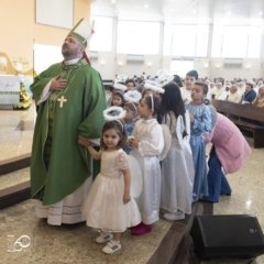 No último domingo, nossa comunidade viveu um dia especial! Na primeira missa celebrada por Dom Adalberto como bispo ordenado de Rio do Sul, fomos abençoados com uma cerimônia cheia de amor e fé. O ponto alto foi a linda homenagem das crianças, que entraram vestidas de anjinhos, enchendo a igreja de pureza e alegria. 🕊️✨