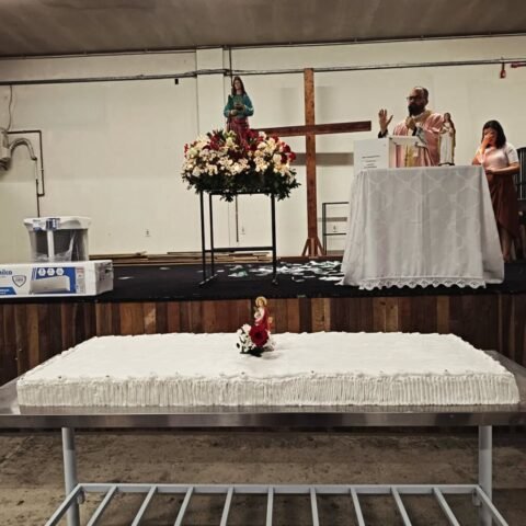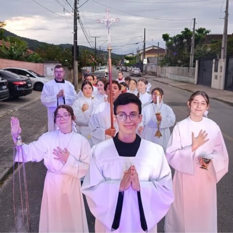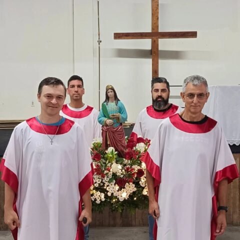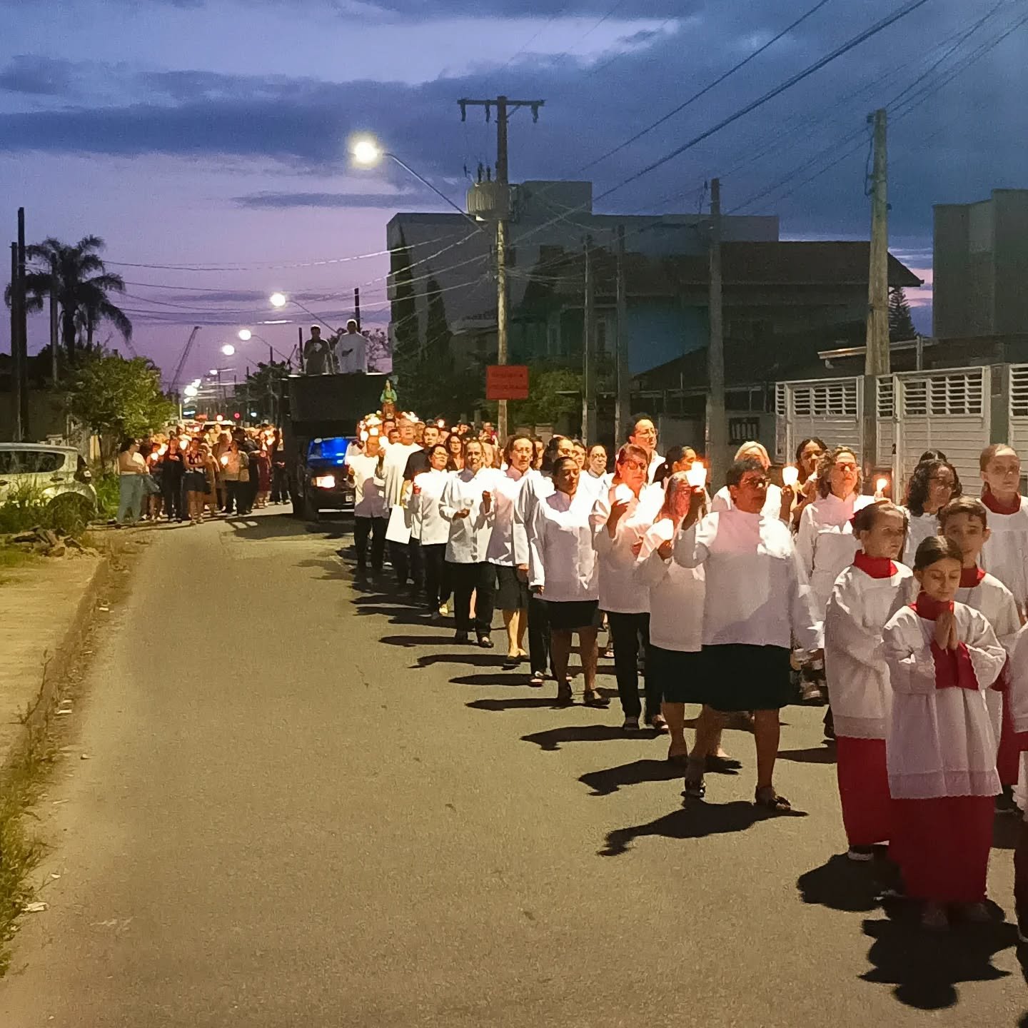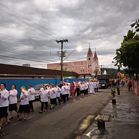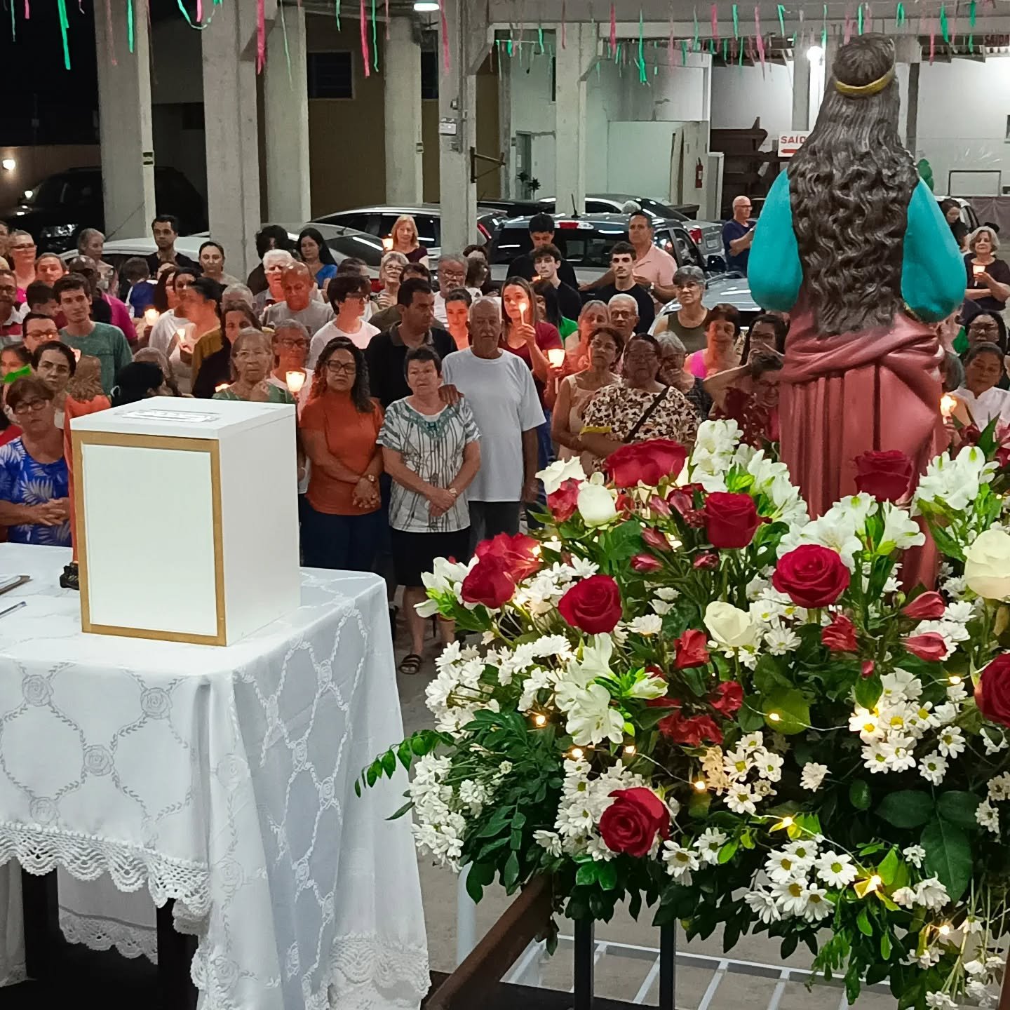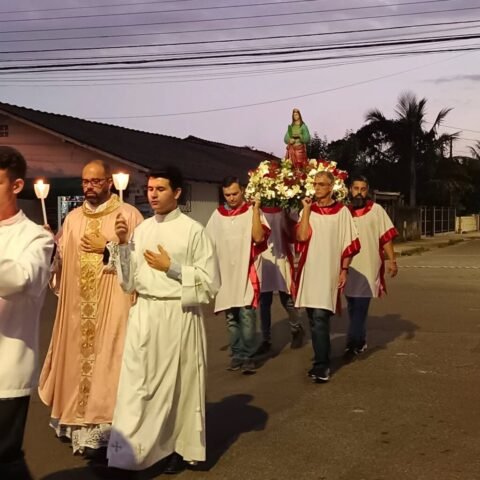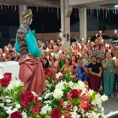 Vivemos uma noite de fé e alegria com a procissão luminosa em honra à nossa padroeira, encerramos esse momento de graça com o sorteio do ar-condicionado e da imagem de Santa Luzia, finalizando a noite com um delicioso bolo partilhado entre a comunidade.